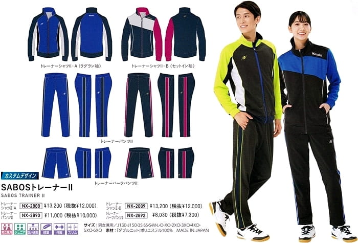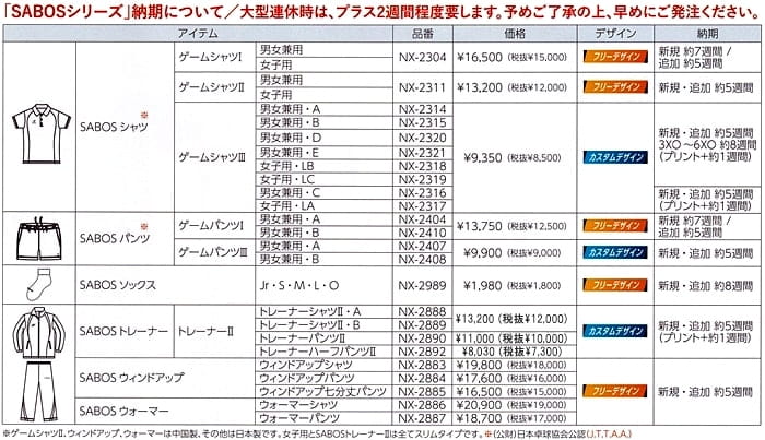SABOSゲームシャツⅠ・Ⅱ・ⅢおよびSABOSゲームパンツⅠ・Ⅲは(公財)日本卓球協会公認(J.T.T.A.A.)です。 |