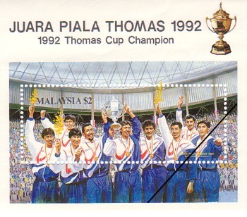 1992トマスカップでマレーシアが優勝したときに発行された記念切手
