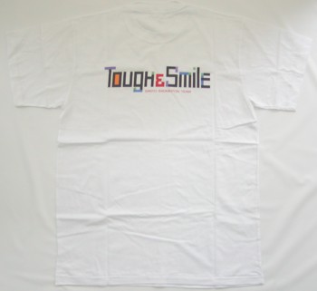 「Tough & Smile」のロゴを胸と背中にプリントした特製Tシャツ。現在のものとはロゴが微妙に違っているそうです。