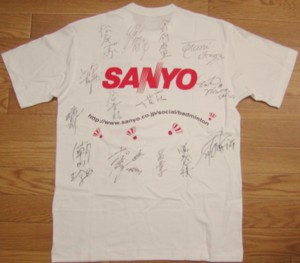 三洋電機バドミントンチーム特製Tシャツ(2005年チームメンバーサイン入り)